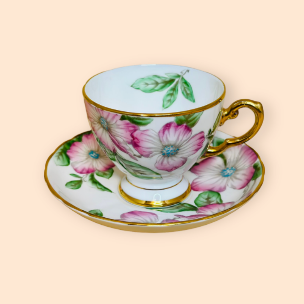 Antique Tuscan Fine English China Teacup and Saucer Signed