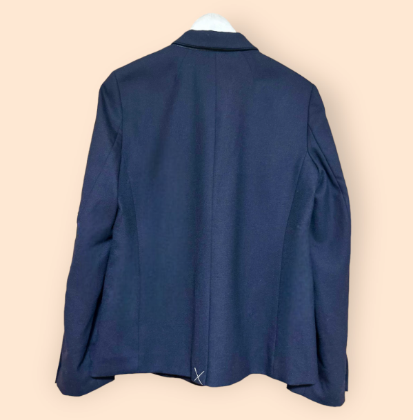 Size Large, 98% wool 2% elastane, fully lined with an interior pocket, 20” chest x 19” waist x 26.5” length x 22.5” sleeves