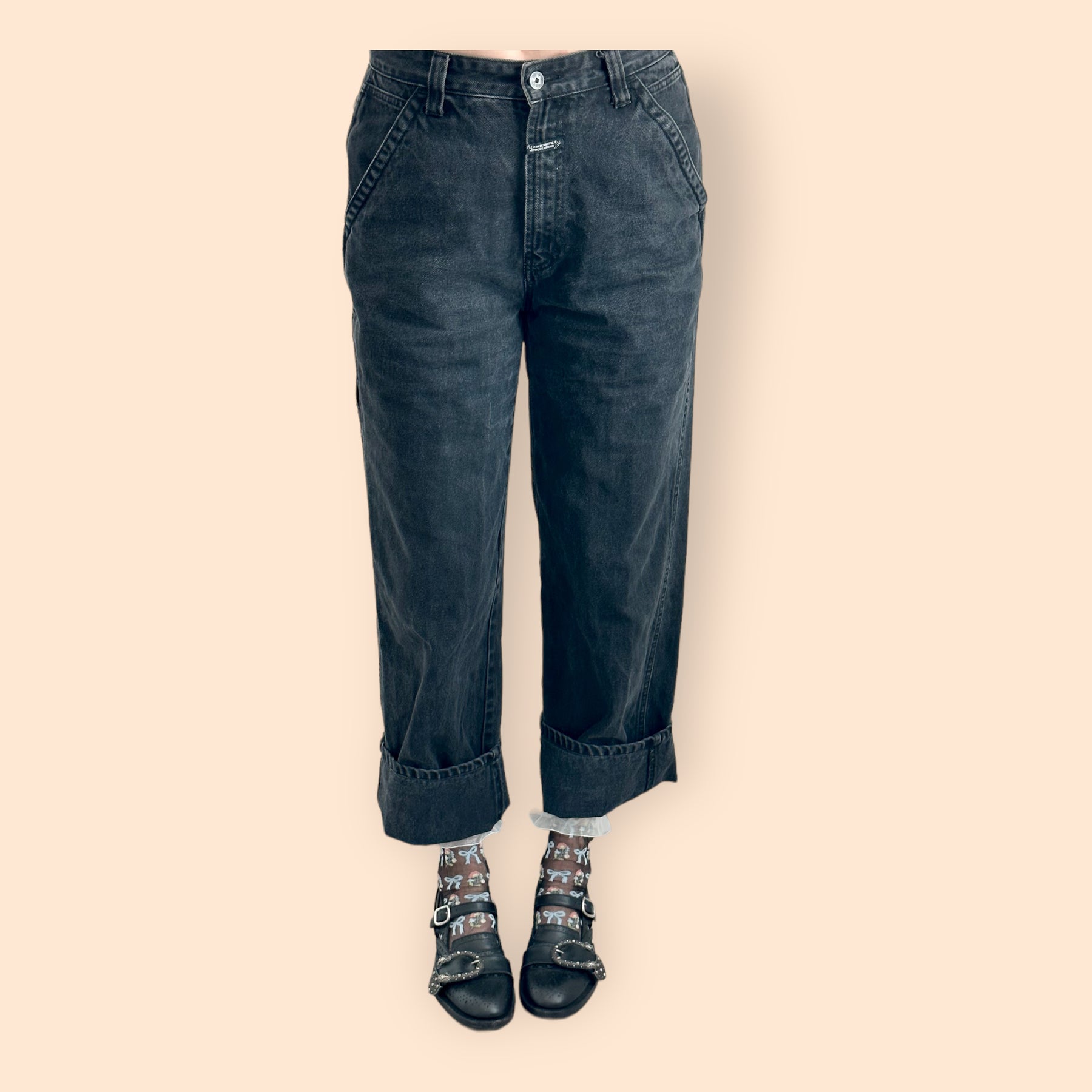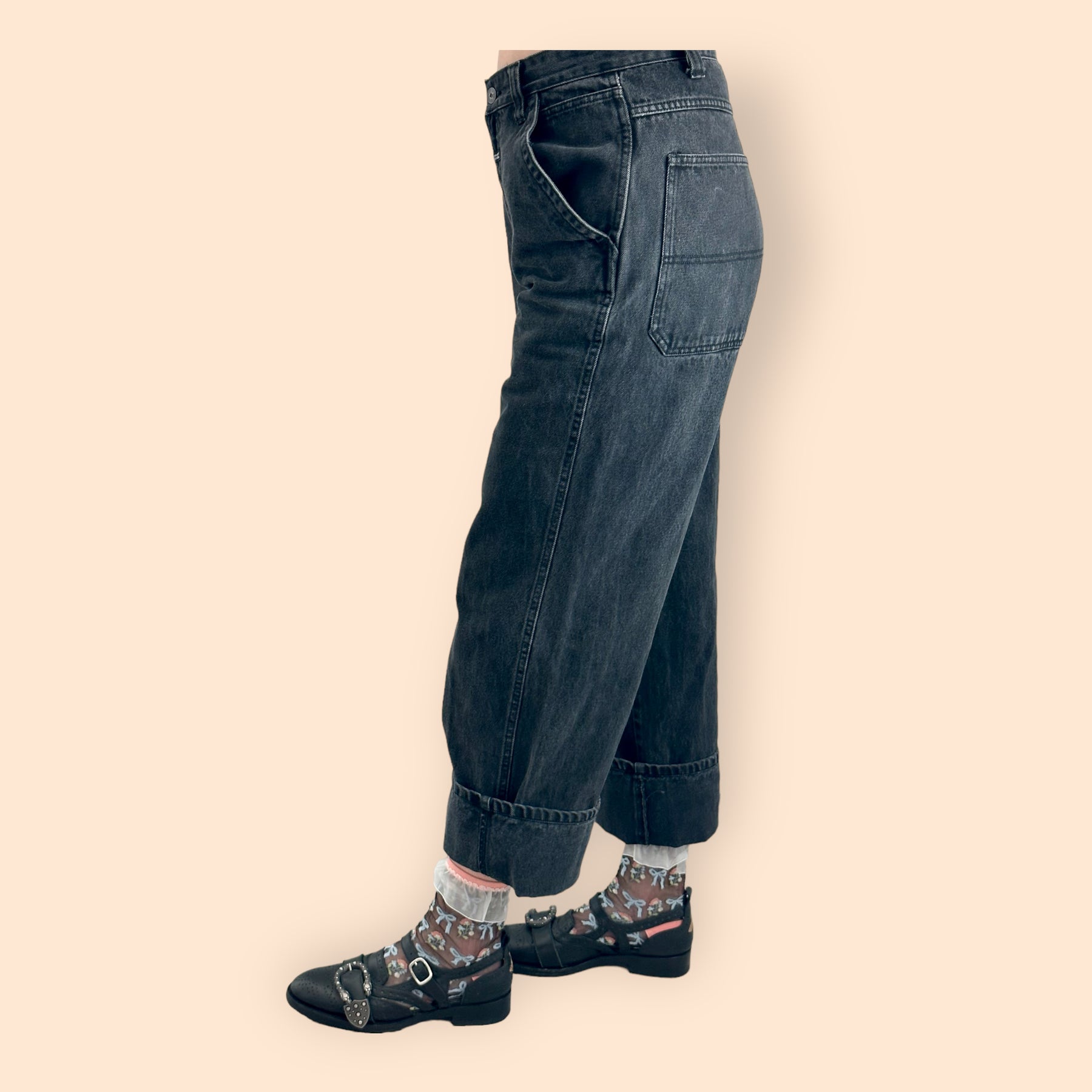 These wide leg 90's carpenter are begging to take you skate boarding, or at least to make you dream of skateboarders. They have the kind of nostalgic energy that only an OG brand can bring. We can picture the Chucks or Doc's that were likey worn with these when they first came out and cosign revisiting that look. BUT, may we also suggest branching out and rocking these with heels and a tight ribbed tank? Perhaps with one of our vintage neckties and make sure you tag us in those pics.