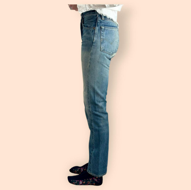 One of my first Levi’s to mend and patch up, so I may have gone a little crazy… but it paid off. There are many details to these giving them so much character and attitude. My hope is that they go to a home that will love, cherish, and wear them often. As with all vintage denim, these will start tight but work with the oils of your skin to create a custom fit. That is why laundering them should only be done when absolutely necessary. Google how to keep denim fresh, there are great links.