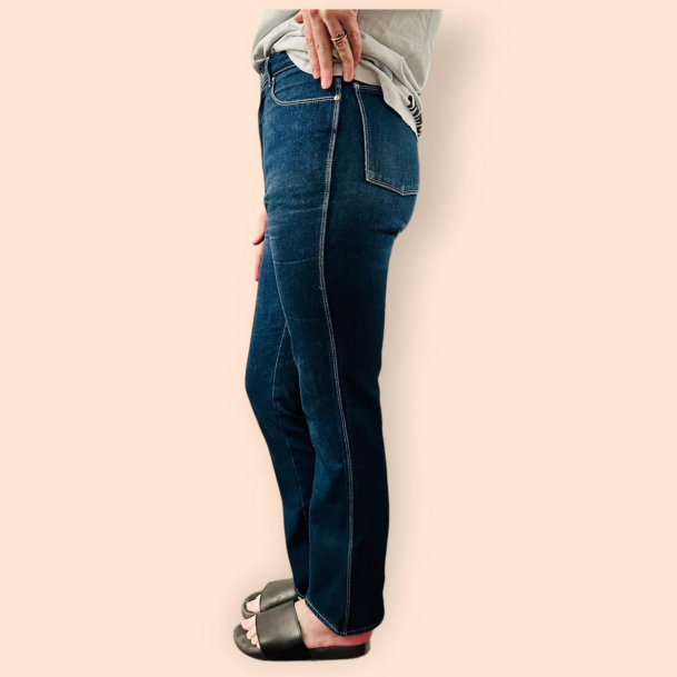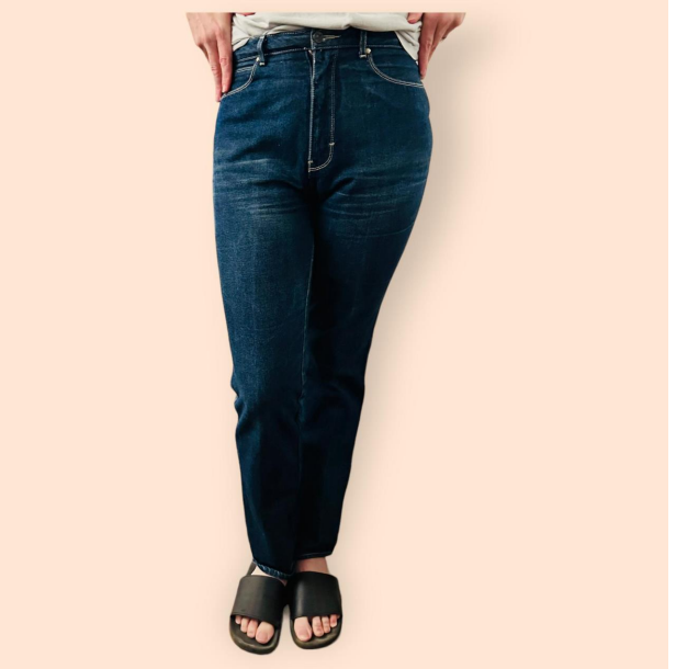 These are dark denim that were measured lying flat at 15” waist x 12.25” rise x 33” inseam x 7.5” leg opening (see our measurement key under Customer Care). Check the measurements against a favorite jean of your own if in doubt, but we think these would fit a size 10-12 or 30-32 best. The fit model is 6’2”, 180 lbs., and typically size 34 in jeans, while the lifestyle model is 5’5”, 142 lbs., and typically size 30-31 in jeans. Though there is no stretch, these are versatile.