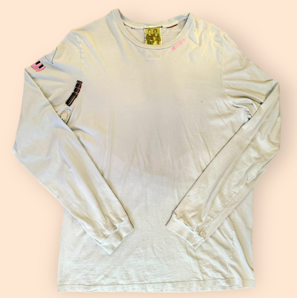 This Free City tee called to me and I happily answered because I [do] Love You. FC is one of my favorite brands, so when I come across one, I will always take it home. This tee was resurrected by patching some arm seams with pieces of flannel from another project and mending a side seam. There are still a lot of holes, but not only do we not care, we think it makes it that much better. Hashtag Brat-tastic (™ pending)
