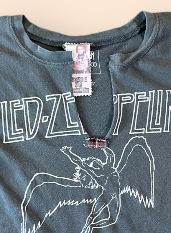 Because I will always help a soft Led Zeppelin come back to life, especially if I ever find one in Kashmir (IYKYK). This tee is a nice classic fit that has been resurrected using a scrap of flannel, and by slicing center front and side seams.