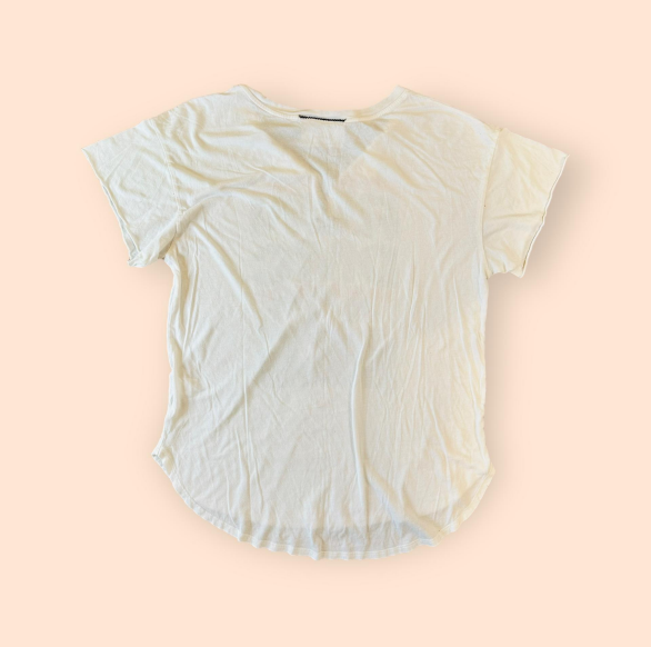 This retro tee measures 21” across the chest and 25” in length. If you question fit, please see our measurements key and compare to one of your favorite tees. We recommend this on all vintage clothing items as sizing parameters can vary. Important to note: this is a perfectly imperfect tee, it will have additional signs of distressing that bring the extra cozy vibes. Model is 5’5”, 142 lbs, size M in tees, 30 or 31 in jeans
