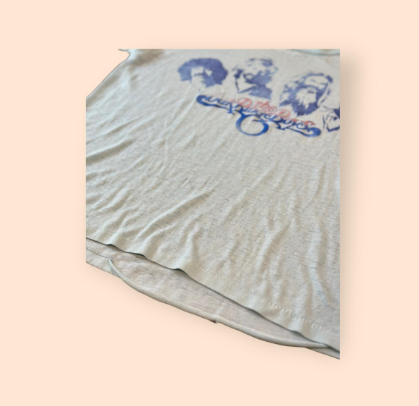 This antique tee measures 19” across bust (armpit to armpit) and 22” long (from shoulder seam to hem). If you question fit, measure one of your favorite tees for comparison.We recommend this on all vintage clothing items as sizing parameters can vary. Important to note: this is a perfectly imperfect tee, it will have signs of distressing that bring the extra cozy vibes