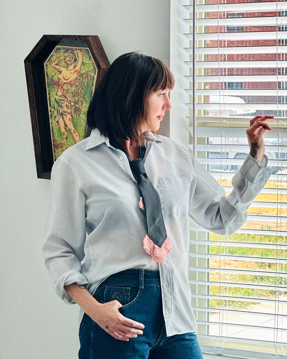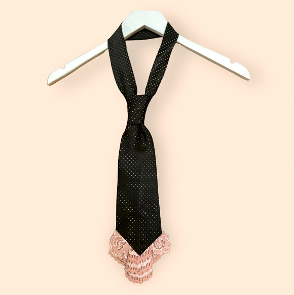 I am in love with this necktie! It was the first one that came out perfect, after much trial and error of adding the lace. I’m the first to admit that I am a creative seamstress, not a technical one but this was one time I wished I was a bit more technical. In the end, it came out just how I wanted. It has been shortened as well as embellished, and you can see and feel the bespoke nature of this beauty. I hope it finds their perfect person. We’re starting a movement: Neckties are the new necklace!
